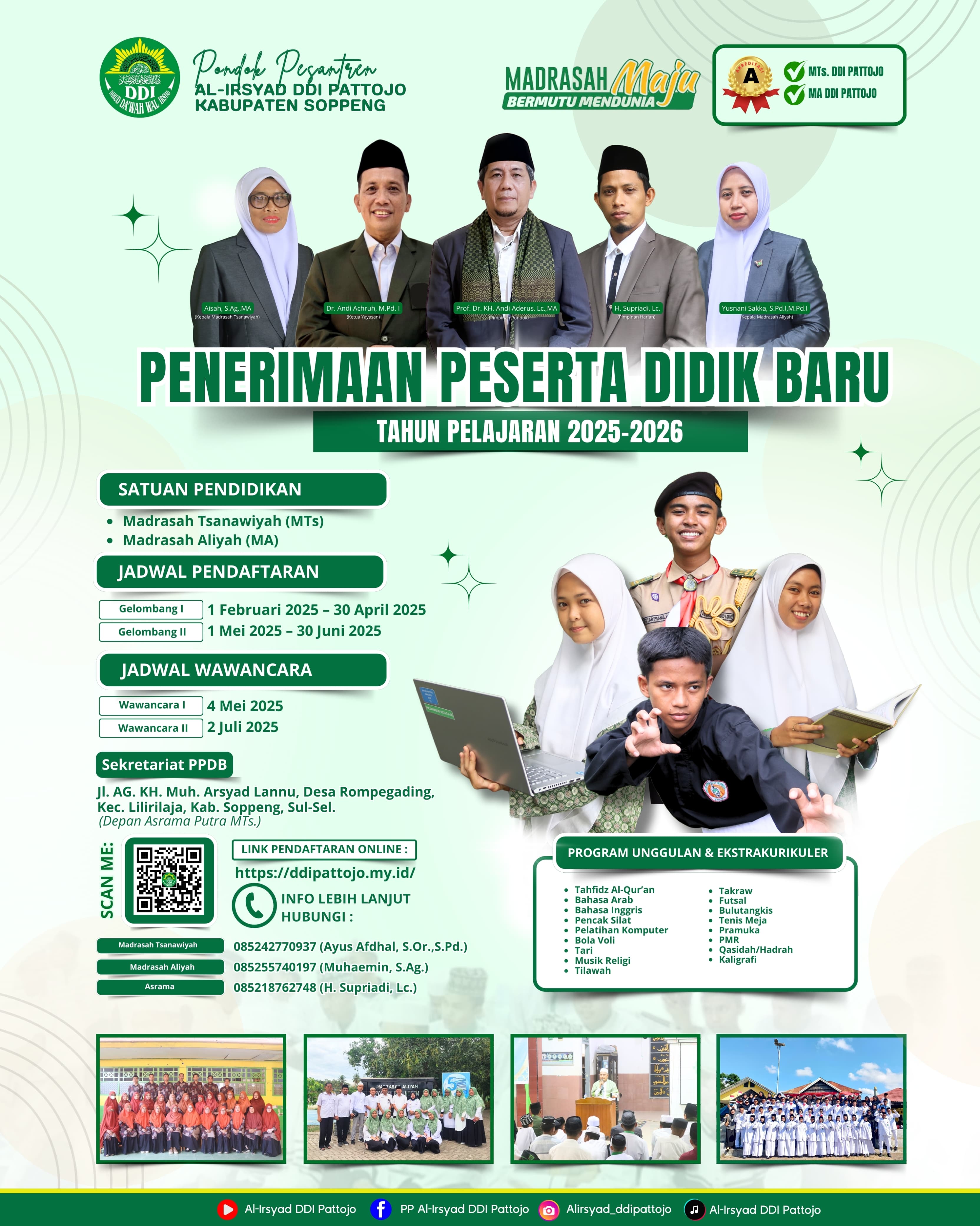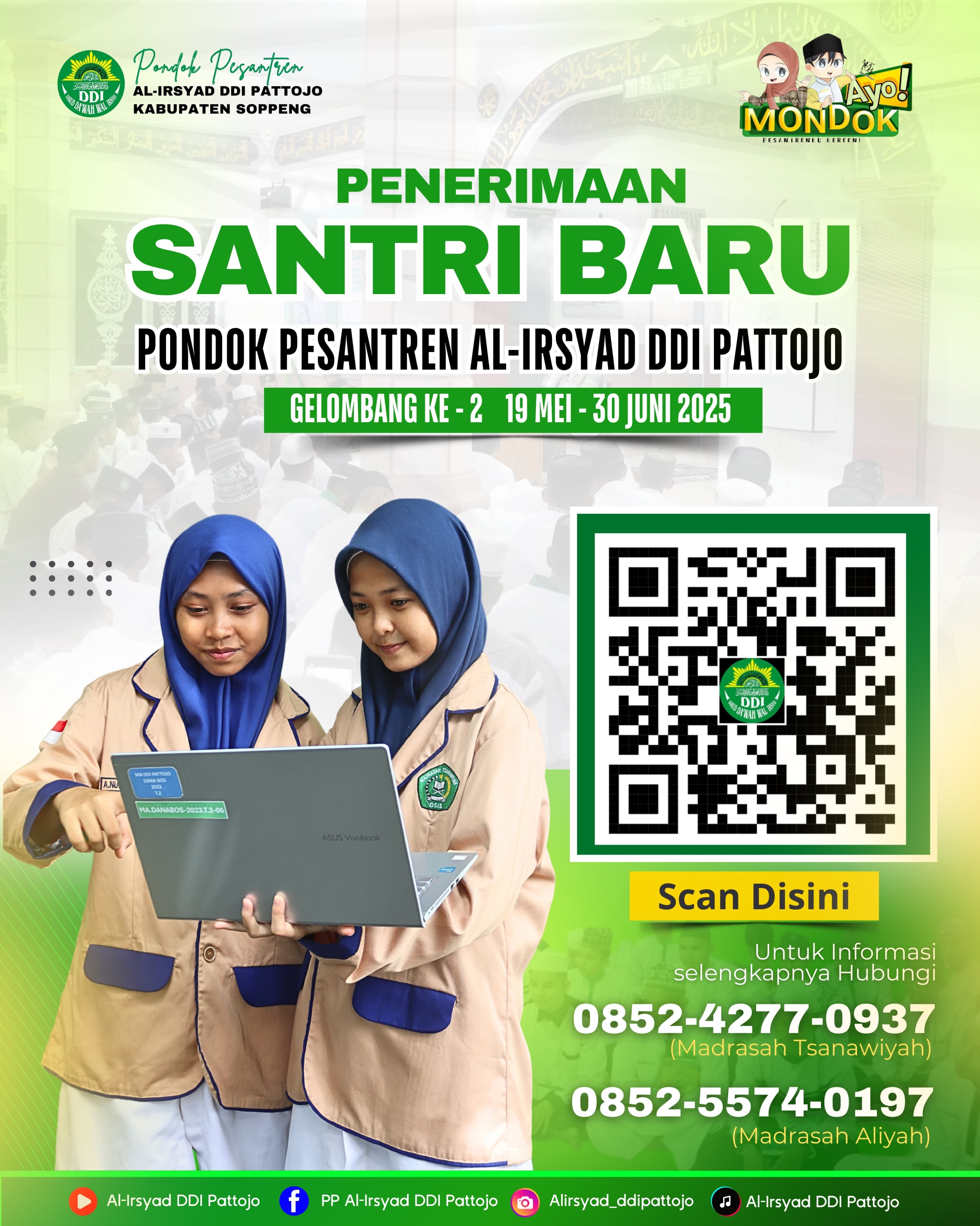 SEJARAH BERDIRI PONDOK PESANTREN AL-IRSYAD DDI PATTOJOPada tanggal 01 Agustus 1932 berdiri Madrasah Annajahiyyah yang di dirikan oleh H. Andi Sumange Rukka Datu Pattojo, K.H. Daud Ismai